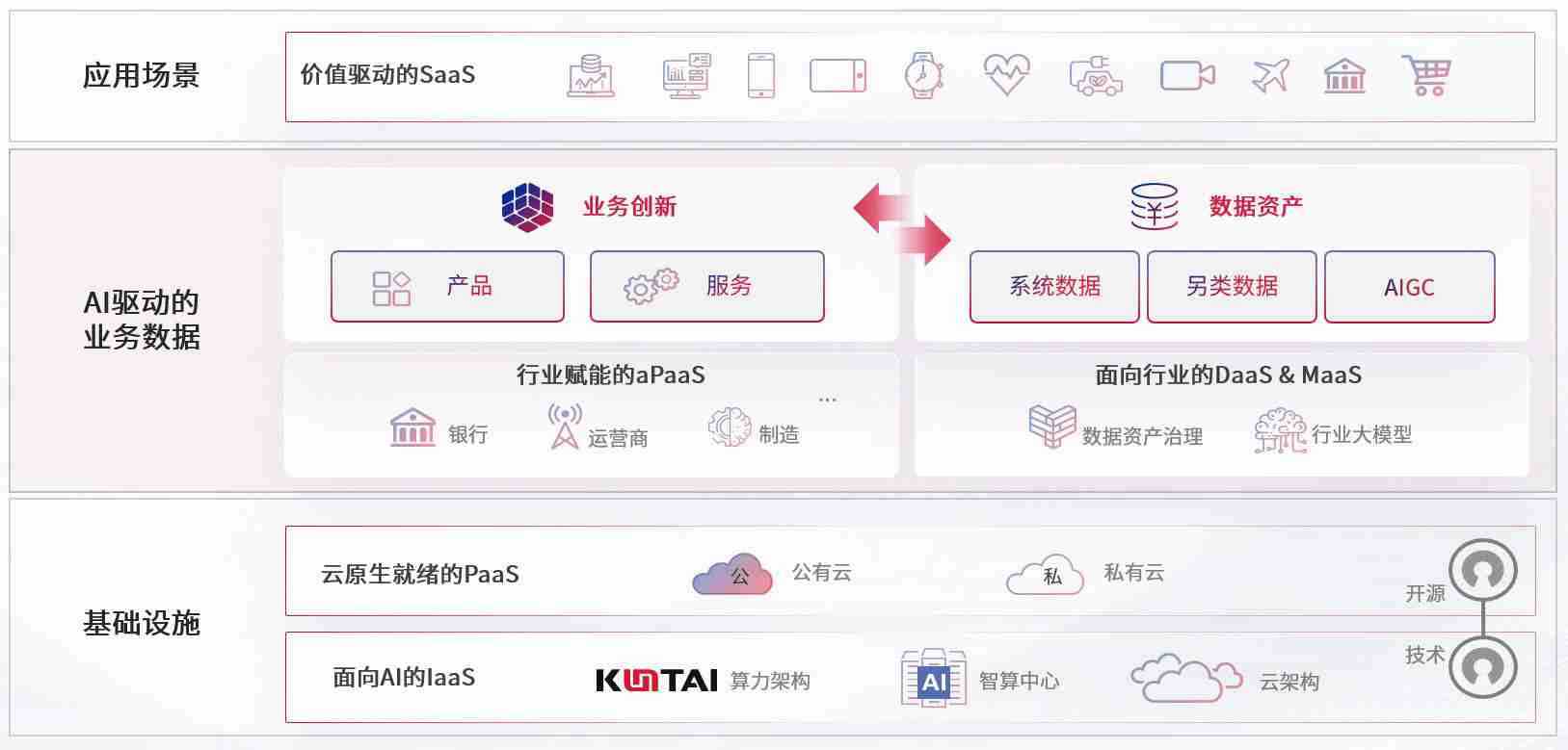 数字时代,,,,围绕企业数字化转型的关键要素,,,,星空游戏数码开创性的提出数云融合战略和技术体系框架,,,着力在云原生、、、、数字原生、、、、AI原生和信创产业上架构产品和服务能力,,,,为处在不同数字化转型阶段的快消零售、、、汽车、、金融、、、、医疗、、、、政企、、教育、、运营商等行业客户提供泛在的敏捷IT能力和融合的数据驱动能力,,,,构建跨界融合创新的数字业务场景和新业务模式,,助力企业级客户建立面向未来的核心能力和竞争优势,,,,全面推动社会的数字化、、智能化转型升级。。。。